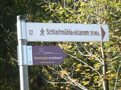 Zu Beginn der Wanderung gibt es gleich nach dem Parkplatz einen Seitenweg zur Schleifmühlklamm. Diesen Weg sollte man nicht auslassen. Er