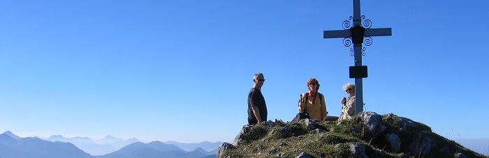 Der Schweinsberg ist ein Nachbarberg des Wendelsteins. Hier haben wir einen herrlichen Ausblick auf den Wendelstein und die Bayerischen Vorberge.