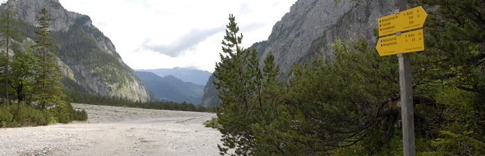 Streckenverlauf: leicht zunächst auf dem breiten Griestal (Schotter, so weit das Auge reicht); sodann auf breitem Forstweg hinab zum Tal