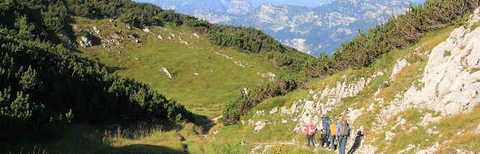 Streckenverlauf: auf gut ausgebautem, aber meist felsige Pfaden; im mittlerein Teil auf Serpentinen durch Latschengebiet