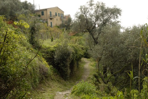 Der Wanderweg ist ein schmaler Pfad, der sich durch die dünn besiedelte Ortschaft auf dieser Höhe schlängelt. |