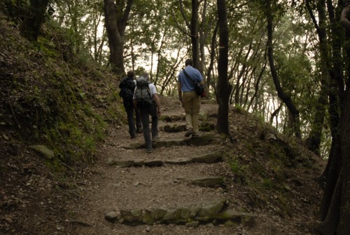 Der Weg wird breiter und führt uns durch eine herrliche südländische Bewaldung. |