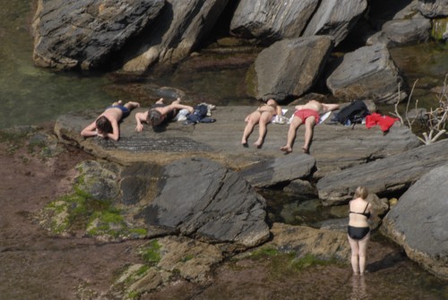 Wer Lust hat, kann sich auf einem der warmen dunklen Steine aufwärmen oder ins Wasser gehen. |