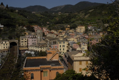 Man hat auch einen schönen Überblick über Monterosso und sieht, wie sich das Dorf in den engen Verlauf des Bergeinschnitts einpasst. Wir werden bei den anderen Cinqe Terre Dörfern noch sehen, dass die Taleinschnitte dort noch enger sind. |