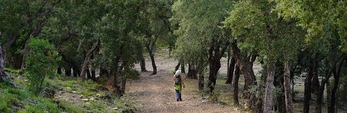 Eine lange Strecke führt uns der Weg auf schmalen Pfaden durch üppige Vegetation. Später wird der Weg breit (siehe oben) und führt uns durch einen schönen Wald mit Steineichen.