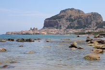 Auf einer Halbinsel ragt weithin sichtbar ein gewaltiger Steinklotz 270 m in die Höhe. Auch aus weiter Ferne, wie den Bergausläufern der Medonie, ist der Rocca di Cefalu ein Augenmerk. Er war Namensgeber der Siedlung "Kephaloidion" wie sie die Griechen nannten, abgeleitet aus dem Griechischen für Kopf oder Haupt. Die ersten Siedlungen waren nicht wie heute unterhalb der riesigen Felsmauer, sondern auf dem Felsen, der wie eine natürliche Burg Schutz und einen weiten Blick entlang der sizilianischen Küste und über das tyrrhenische Meer verschaffte.