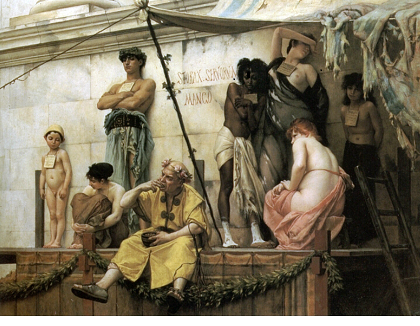Hier wurde offensichtlich ein Edelsklave versteigert, das zeigte bereits der Preis. In der Regel wurde Sklaven zu einem Preis von 200 bis 1000 Denar versteigert. Bei Mokabi waren bereits 750 Denar geboten.